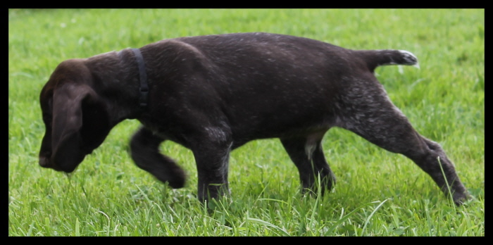 Nasengebrauch 10 Suche 9 Vorstehen 10 Führigkeit 10 Arbeitsfreude 10 Wasserarbeit - Stöbern mit lebender Ente 9 - Verlorensuche 10 Federwildschleppe 10 Haarwildschleppe 10 Art des Bringens 10 Gehorsam 9 Gesamtpunktzahl 174 Pkt.